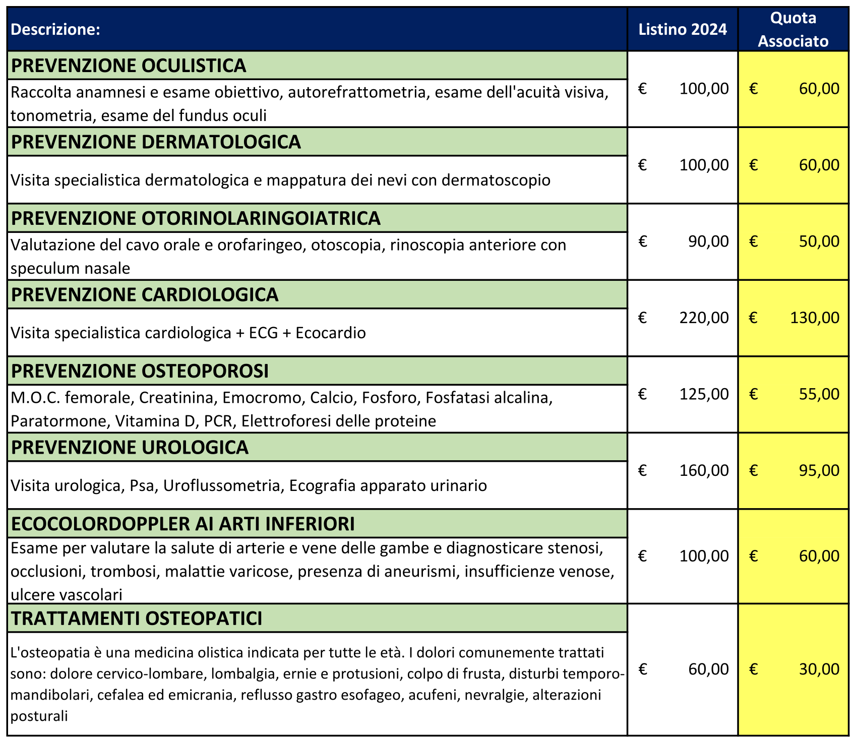 Proposte Prevenzione presso Centro Bianalisi San Cristoforo